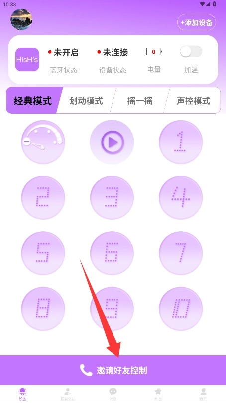 HisHis这款软件挺有意思的,既能用来遥控设备,也能帮助用户结交朋友。当成功连接蓝牙设备后,用户可以通过手势、声音或者摇一摇的方式来实现对设备的控制。如果想要找人一起互动,还能邀请好友远程操控设备。开通会员后,不仅能解锁更多有趣的功能,控制模式的选择也会更加丰富。此外,用户平时还可以在软件的社区板块发布动态,借此认识一些兴趣相投的朋友。