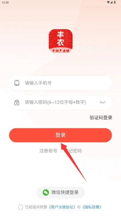 在登录页面填写手机号与登录密码,勾选同意相关条款后,点击登录按钮即可进入应用。