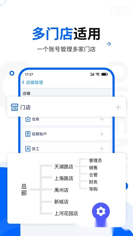 3.手机进销存功能齐全,操作简单,多门店适用,一个账号管理多家门店。