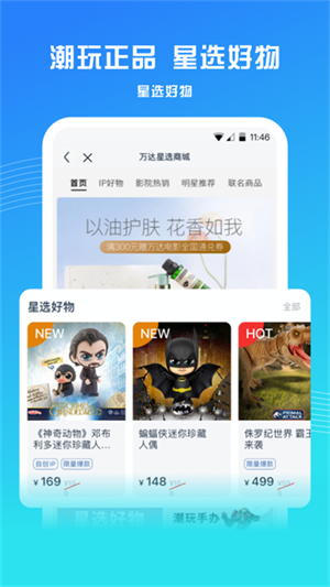 万达电影最新版本还整合了丰富的电影相关娱乐资讯,用户既能借助该软件观看电影路演直播,也能通过它选购各类电影IP衍生的周边产品。
