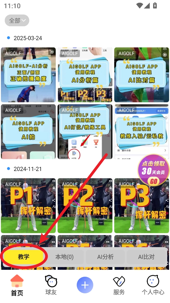 点击“教学”标签,就能看到AI分析、AI比对等具体的教学课程详情。