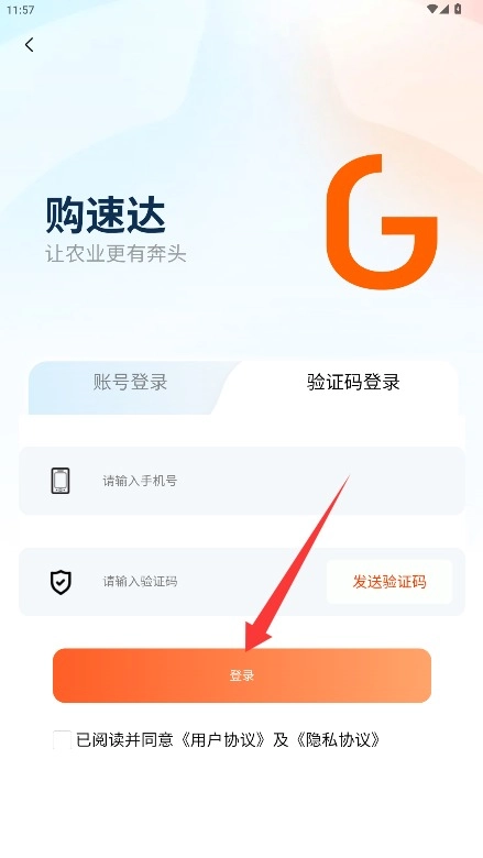 在登录界面填写手机号与验证码,勾选同意相关条款后点击登录按钮即可进入应用。
