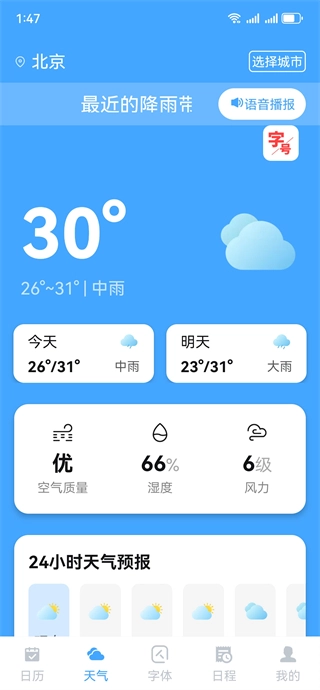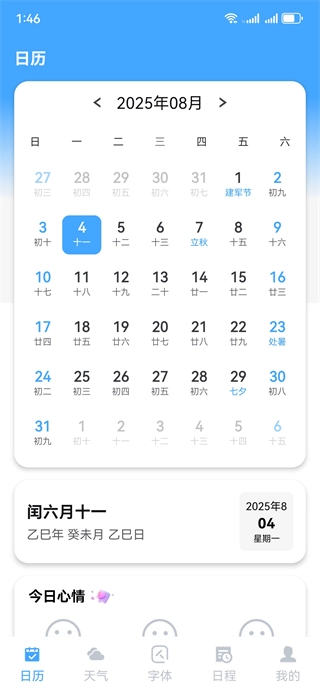 时光大字日历的核心亮点在于字体够大,而且界面上的各个功能区域都清晰直观,很容易找到。除了能满足基础的日历查询需求外,它还额外配备了天气预报、日程助手等实用功能,对于中老年人来说,用起来特别顺手、友好。