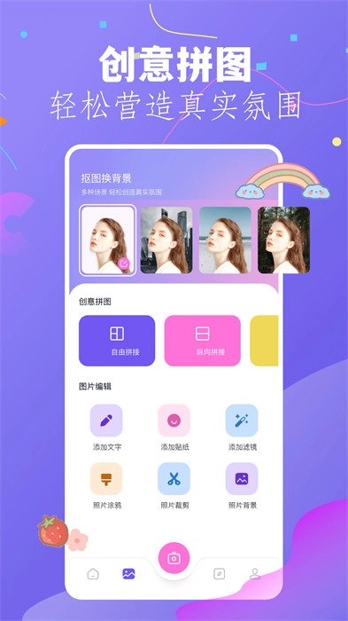 ①、拥有海量素材资源,专门搭建的素材库可供用户编辑照片时调用,还能依据照片的风格进行适配性调整;