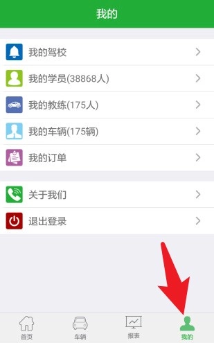 在“我的”页面里,你能够对驾校、教练、车辆以及订单信息进行管理,同时还可以退出当前账号。