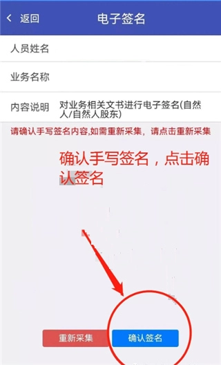输入个人信息并确认无误去签名;