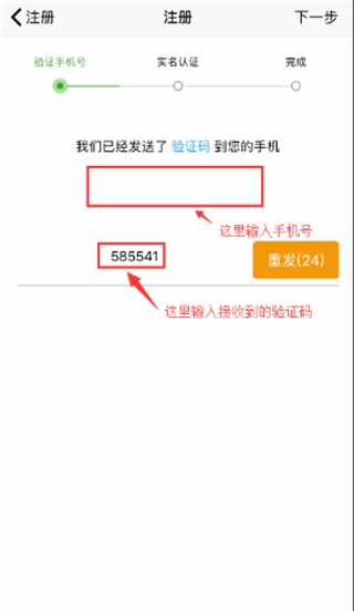 收到验证码后录入,点击“下一步”;