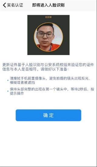 人脸识别,根据提示进行点头、眨眼等操作;