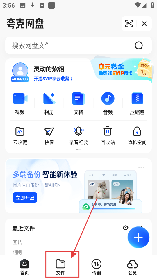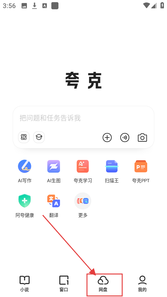 1夸克首页内容超丰富,AI写作、翻译等功能一应俱全!要是需要管理文件,点击底部【网盘】,即刻就能进入网盘页面。