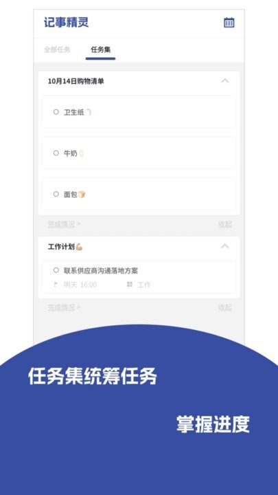 记事精灵是一款轻量高效的待办清单工具,你可以随时记录需要完成的待办任务,并设置提醒通知及截止通知,帮助你告别拖延!