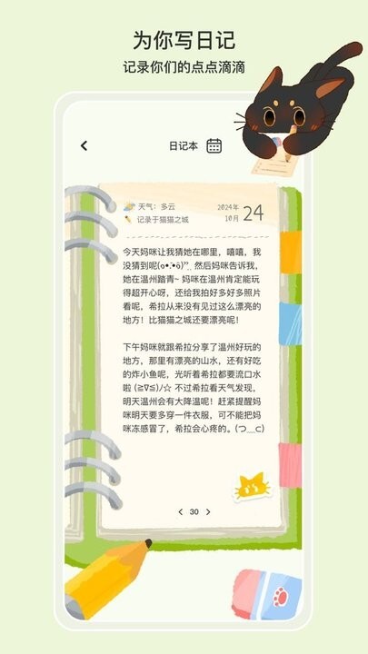 为用户提供了线上的写日记功能,方便用户可以随时记录生活日记,便捷记录自己的点滴。