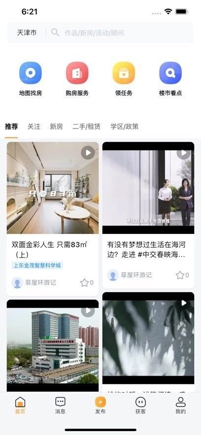 *发布作品:经纪人通过平台发布楼盘介绍、政策法规解读、特价楼盘等多媒体内容,展示自己的服务能力和专业度