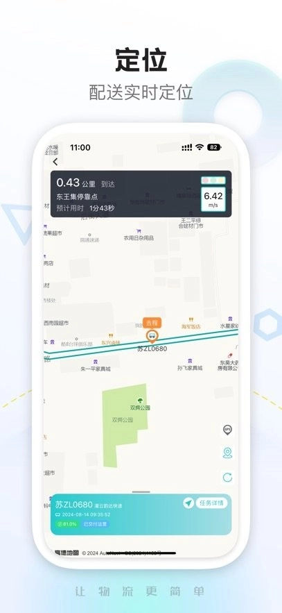 【车辆定位功能】可让用户随时查看其业务车辆的实时位置,以及相关配送货单的详细信息。