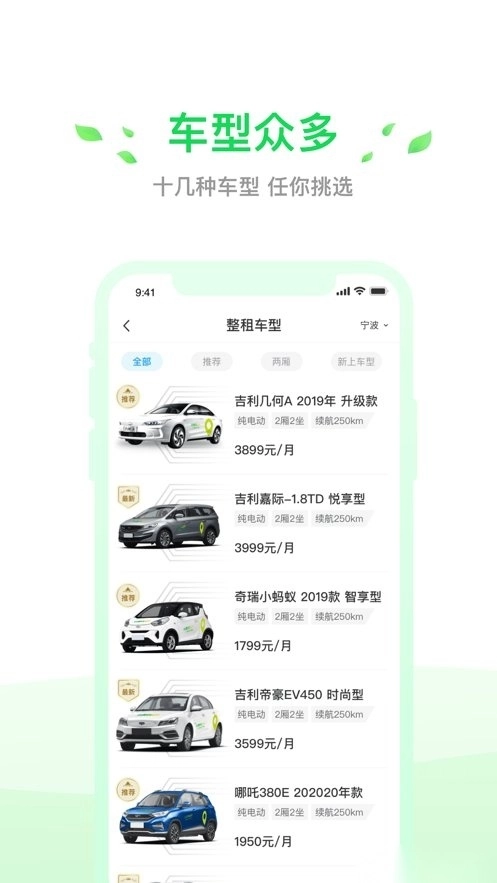 1.软件中有超多的纯电动车,0污染,0排量。