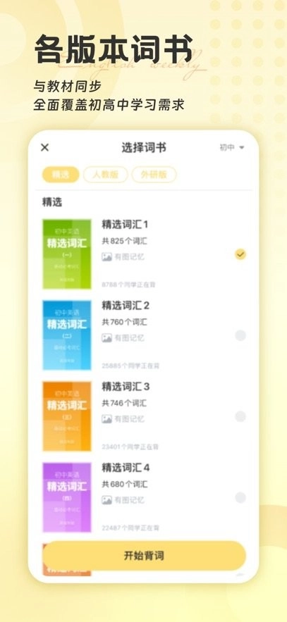 学生自主单词听写系统——与教材同步的单词表,支持自动发音功能,孩子可独立完成听写练习,通过拍摄答案图片上传即可实现智能判分。