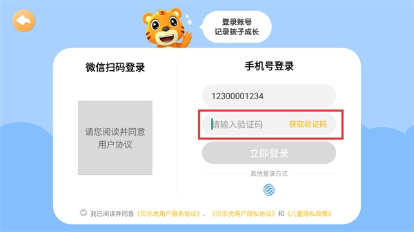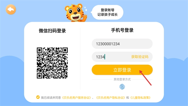 填写完验证码后,确认已勾选相关协议,点击【立即登录】按钮即可完成登录操作。
