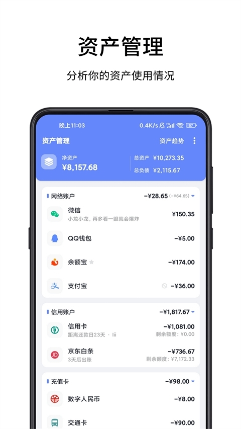 可助力用户实时掌握现有资产的变动状况,同时对月结资产总额进行预测。