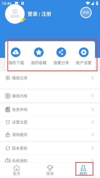 3、登录【我的】页面后,可在该页面管理【我的收藏】,并执行账户设置等操作 。