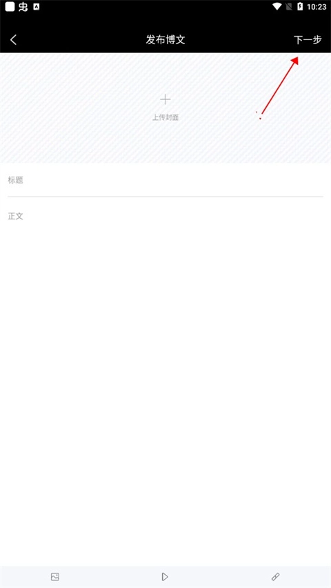 上传封面,输入标题和正文,点击下一步。