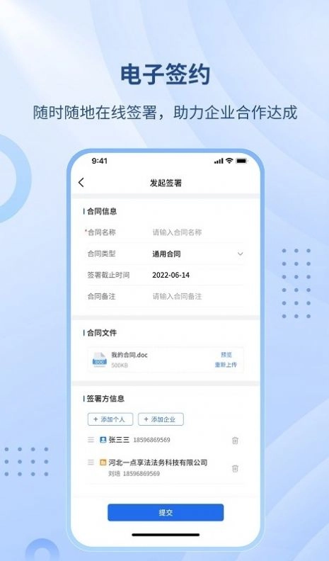 无需再使用纸质合同,无论何时何地,都能借助手机完成电子合同的签署。