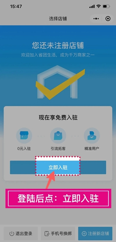 进入省团开店通后,点击右上角显示的“未登录”按钮,即可进入登录页面。