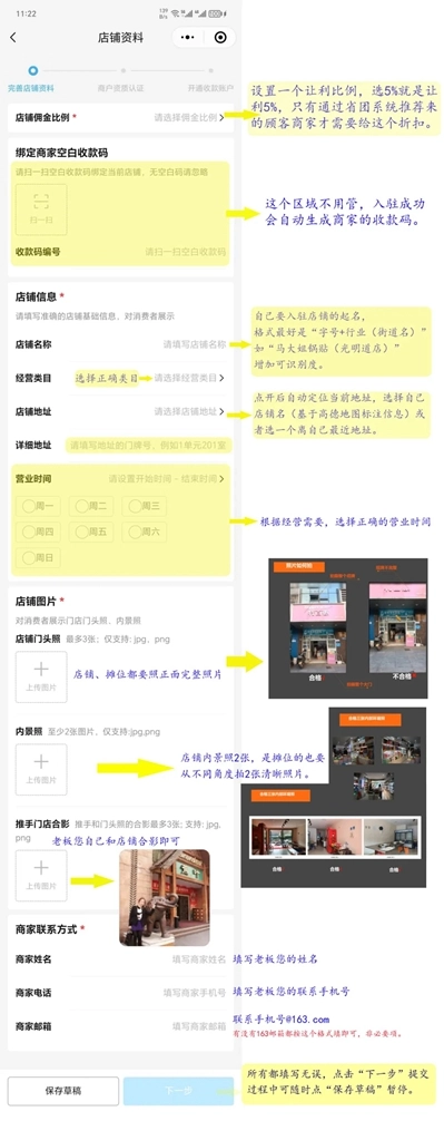 完善店铺资料:按照相关提示填写你店铺相关资料