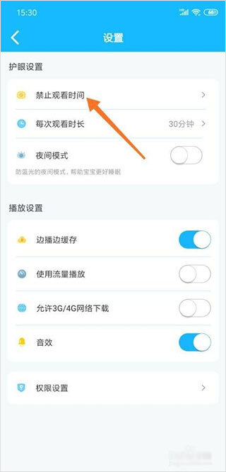 5、进入禁止观看时间界面后,可以设置晚间休息时间和午间休息时间,勾选之后,选择时间段。
