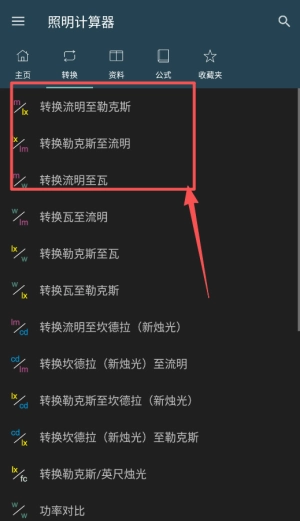 1、打开应用后,首页会清晰呈现各类计算模块,像照度、流明与瓦数转换等,直接点击所需功能就能进入操作界面。