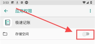 3、进入权限界面,点击存储空间后方的【开关】按钮即可完成授权