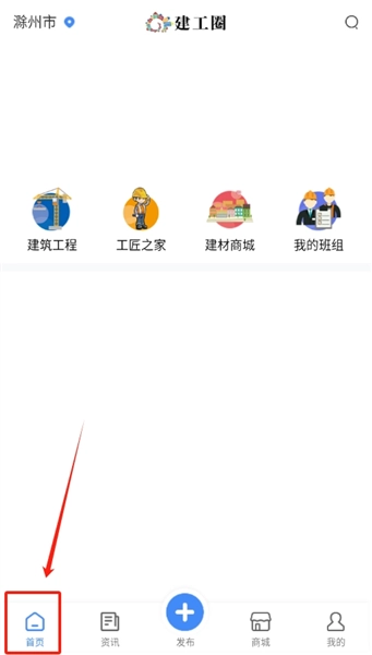 1、大家进入首页后,即可看到建筑工程、工匠之家、建材商城等模块。