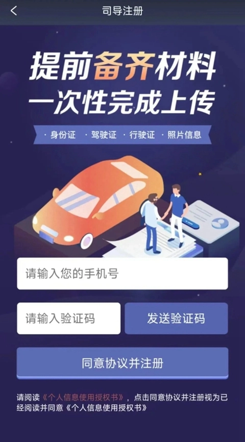 1、好后,点立即注册,提前备好(身份证驾驶证行驶证)照片。