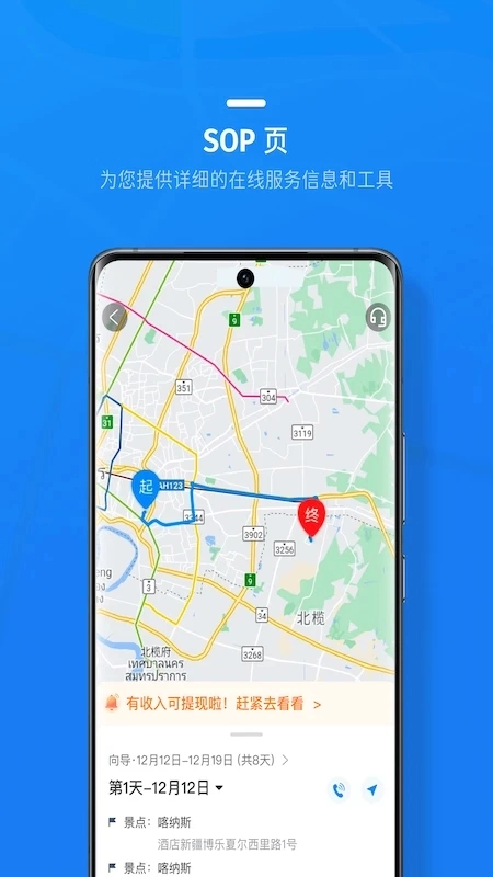 携程司导端是携程专为司机打造的接单管理工具,提供订单匹配、导航指引和收益查询等实用功能。司机可实时查看推荐订单,通过高清地图精准规划路线,确保乘客准时到达;系统自动记录服务节点(如出发、接客、送达),方便结算和纠纷处理。