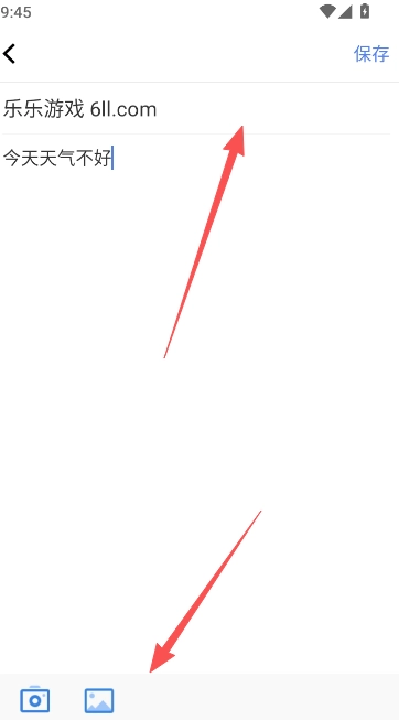 3、点击内容区域输入标题和文字部分,选择图片附件进行保存。