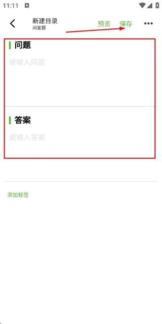 4、在问答题编辑页面填写问题和答案内容后,点击保存按钮完成该卡片的制作。