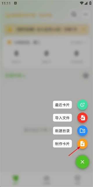 2、在弹出的选项中点击制作卡片选项,进入卡片类型选择页面。