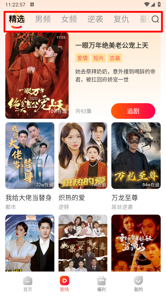 切换到“剧场”板块后,就能按照分类来筛选自己喜欢的剧集了。