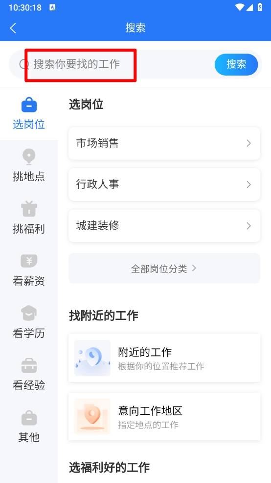 用户还可以根据输入关键字搜索要找的工作。
