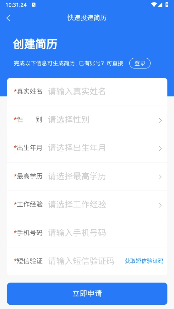 最后输入相关信息,点击底部"立即申请"即可。