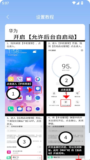点击快速设置允许后台自启动