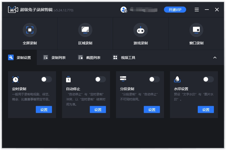 可以设置多种录制参数。成为会员后,用户能使用定时录制、自动停止、分段录制、水印设置等功能。