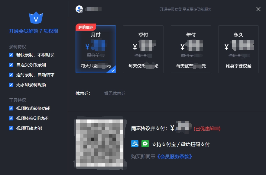 超级兔子录屏剪辑支持同账号会员权益在多终端间互通共享。具体来说,若用户在安卓端开通了会员,后续使用该账号登录Windows端或iOS端时,同样可以享受完整的会员权限。