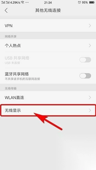 然后打开手机,找到设置-其他无线连接-无线显示(Micracast)