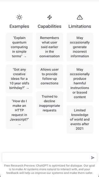 ChatGPT的整体用户界面简洁明了,用户不需要进行复杂的设置就能迅速开启聊天。