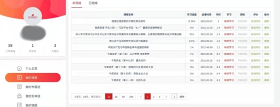 4、点击“我的课程”,能够查看学员的学习历史,其中涵盖未完成和已完成的课程。在未完成页面,还可以查看学习进度,点击“继续学习”按钮就能开展课程的学习。