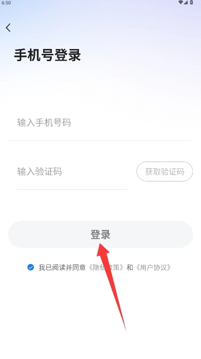 2、在登录界面输入手机号码与短信验证码,勾选同意相关条款后点击登录按钮进入系统。