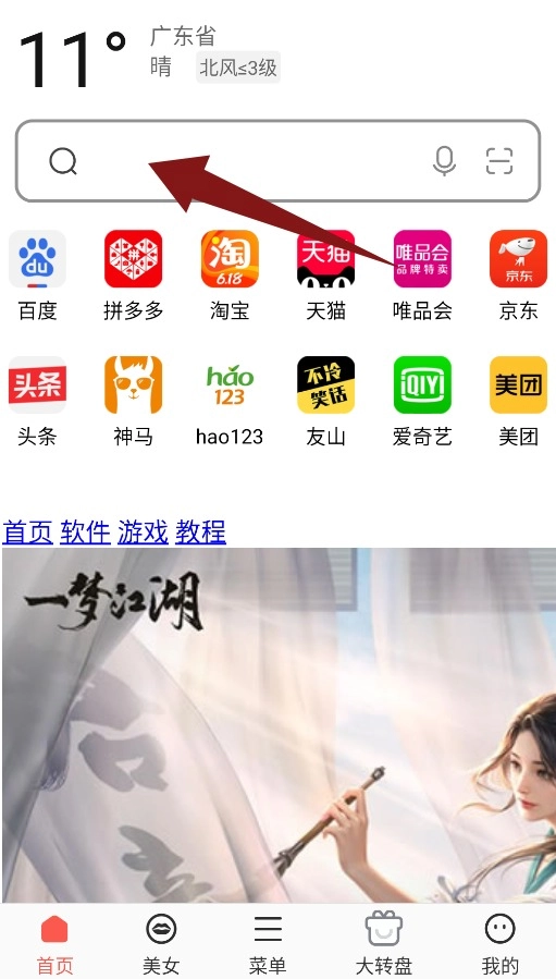 2、首页的搜索栏具备输入网址或关键词的功能,可直接开展网络搜索。
