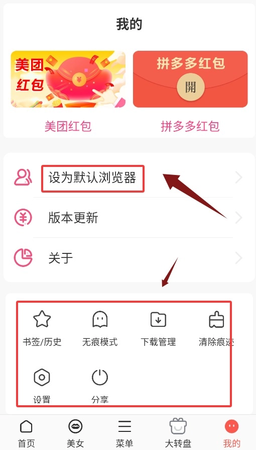 4、在个人中心里,能够设置默认浏览器,还可以调整其他与浏览器相关的选项。