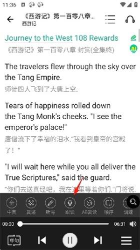 3、开始后点击下方跟读按钮后开启跟读模式。
