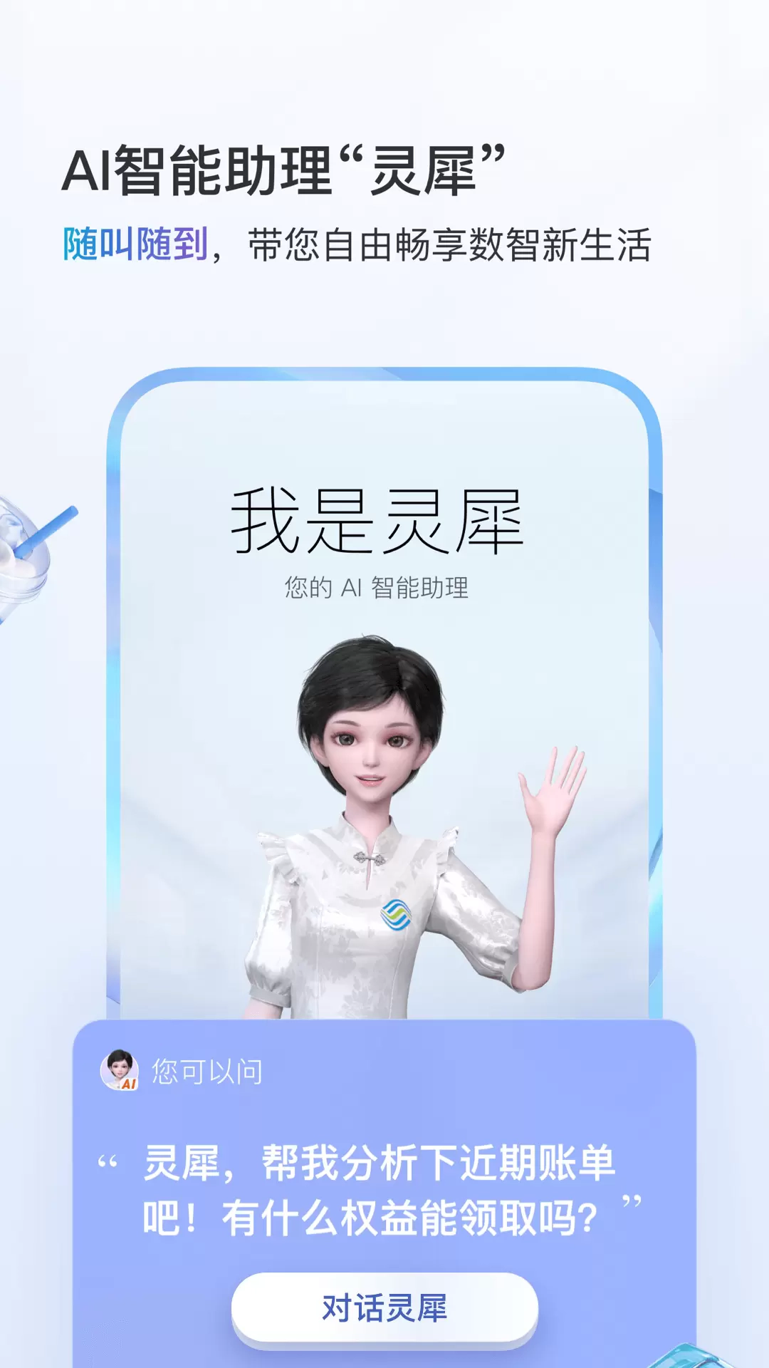 2、灵犀AI智能助理支持语音或文字对话交互,能协助用户分析近期账单情况,查询并领取各类可用的权益福利,从而提升用户的使用效率。