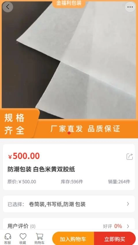 金福利包装是一款专注于纸箱纸盒等包装材料采购的软件。它能将各类包装商品进行清晰分类,方便使用者快速查找所需物品。主界面设计直观简洁,商品图片展示明确,让下单流程顺畅便捷。定期更新上架新款包装产品,适合有持续采购需求的使用者经常浏览。商品定价具有竞争优势,相比线下市场采购更加经济。感兴趣的朋友快来试试吧!